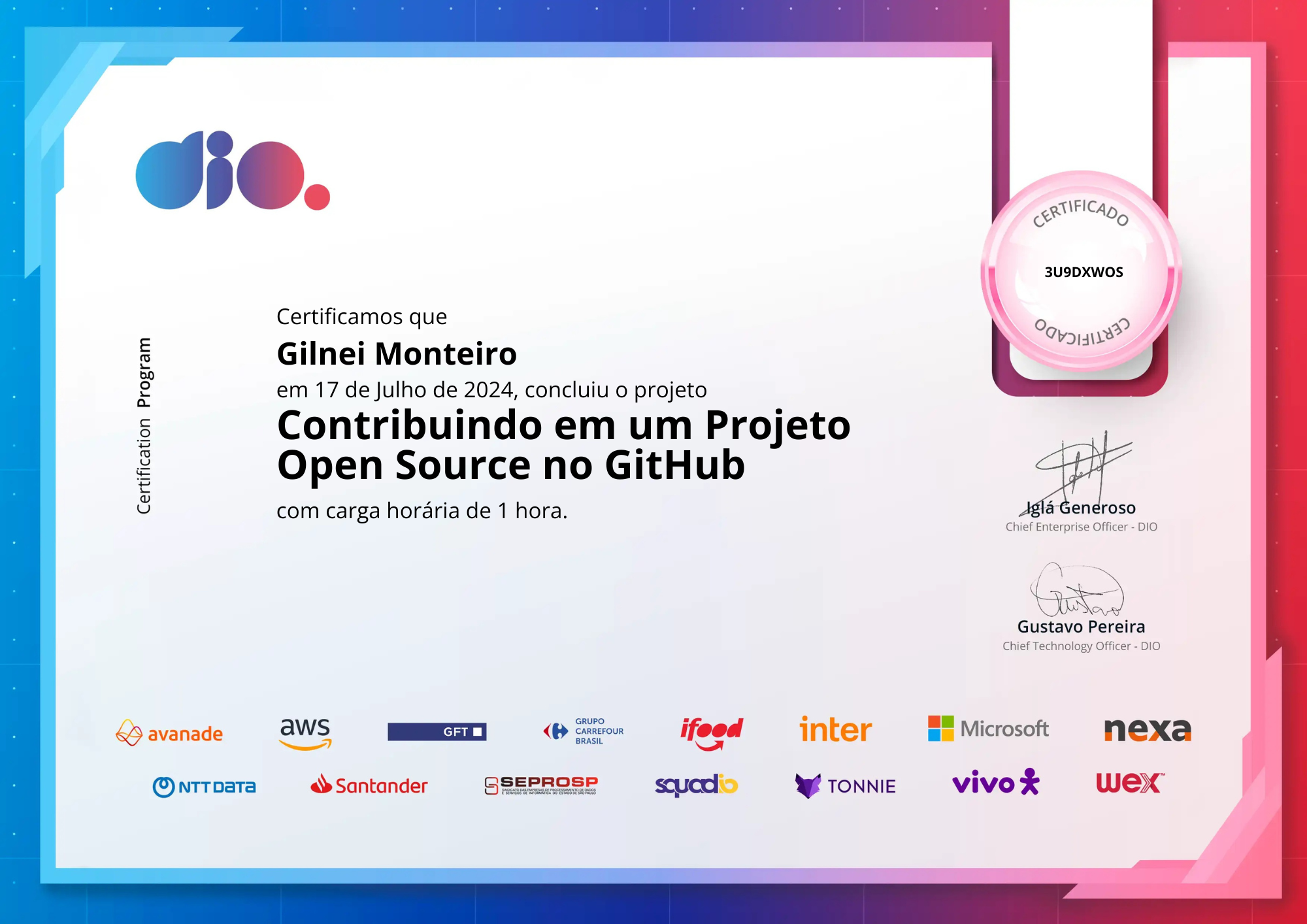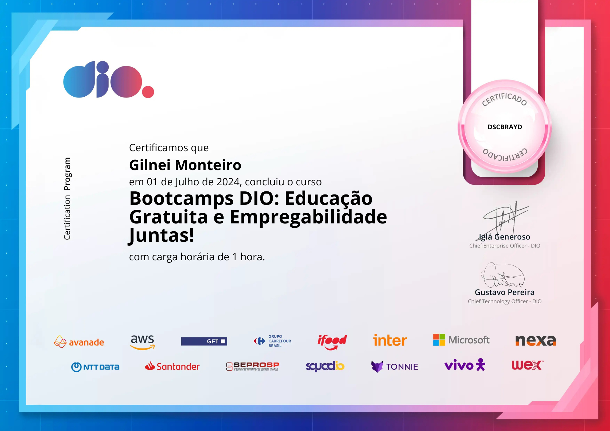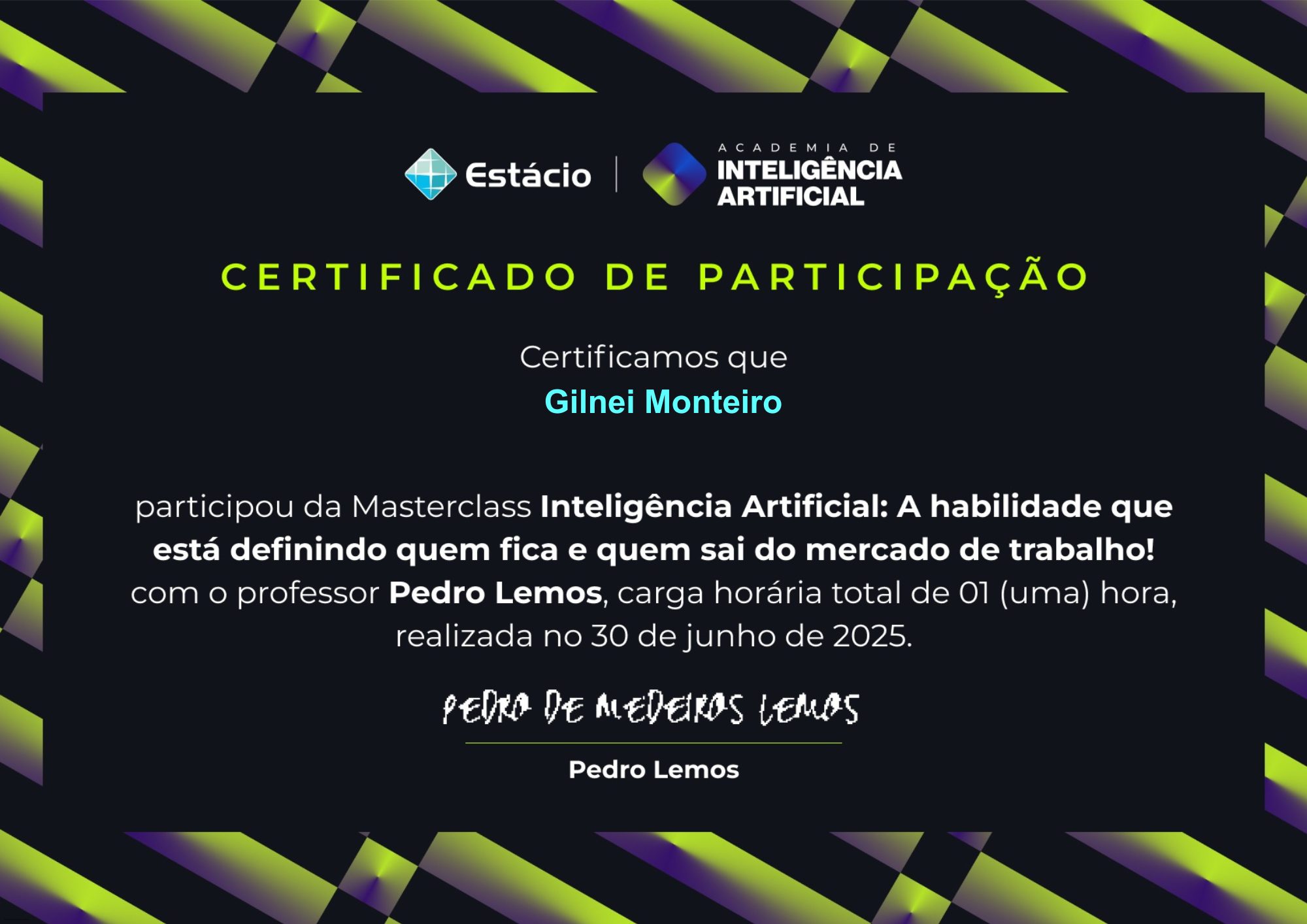 - UNESA Cursando a Graduação em Análise e Desenvolvimento de Sistemas.