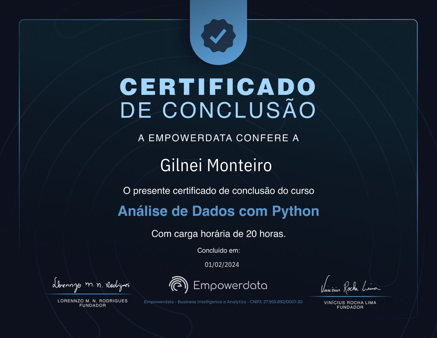 Curso de introdução à linguagem python no periodo de 03-2024 até 08-2024 com duração de 120 horas