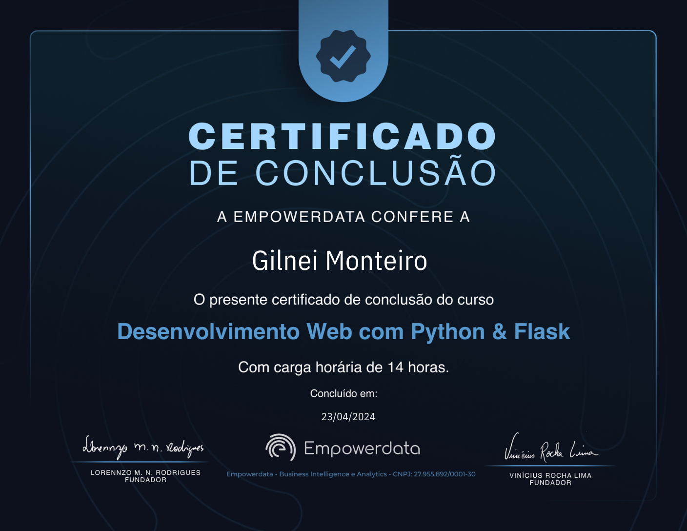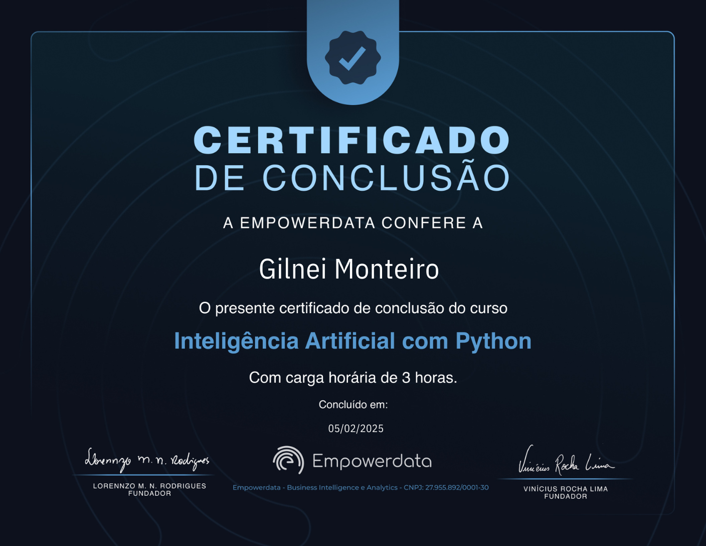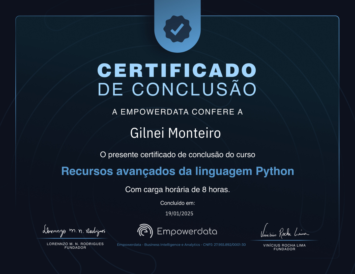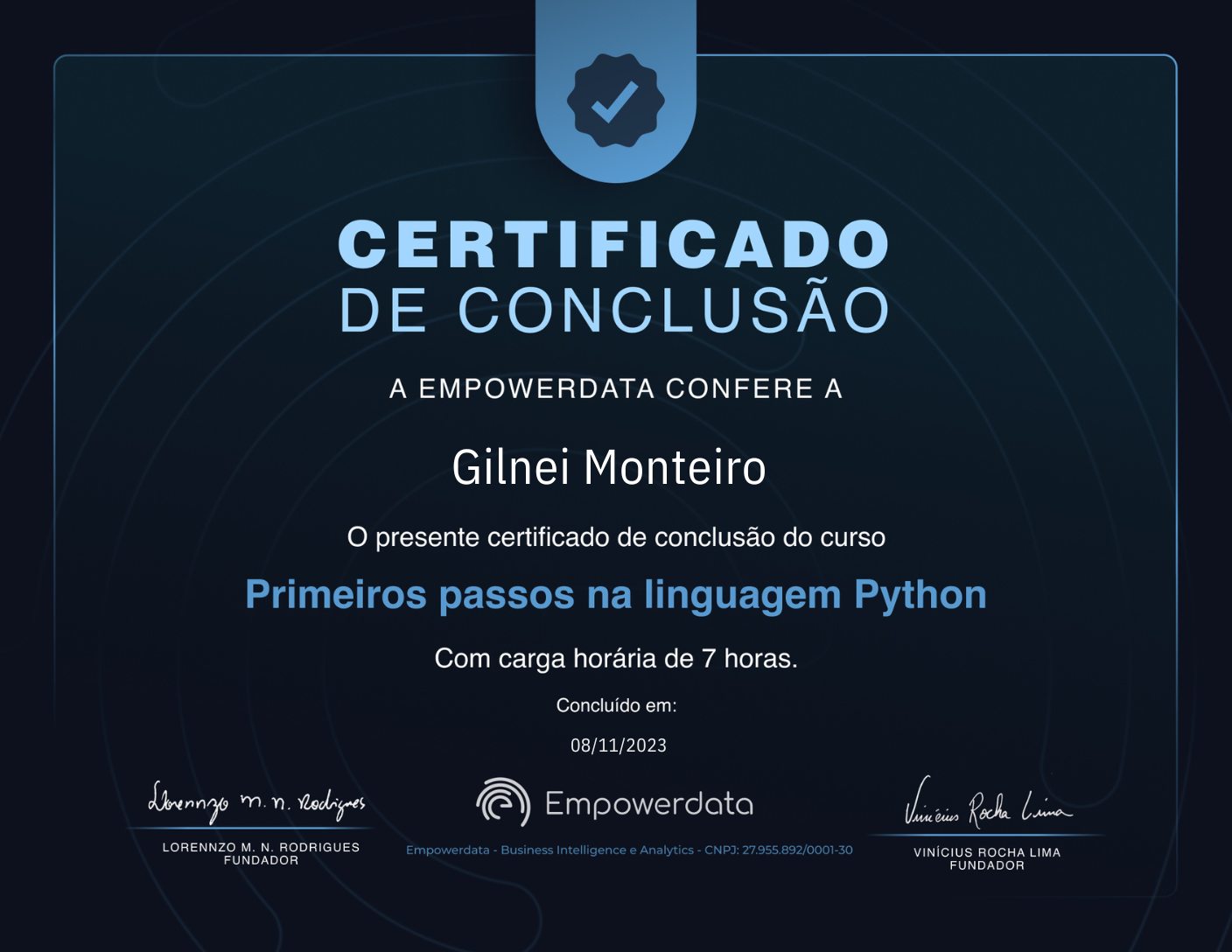 - IFSC Concluindo o curso de Introdução a Linguagem Python.